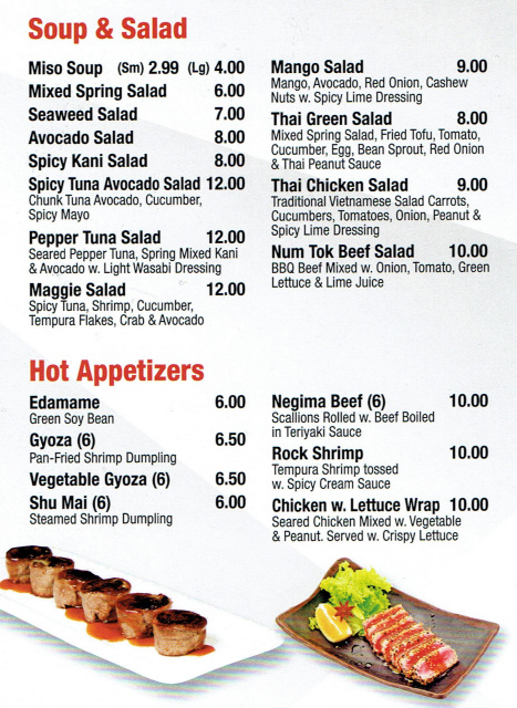 The fusion of Chinese, Japanese, and Thai Menus along with the oriental atmosphere has people talking with their chopsticks.